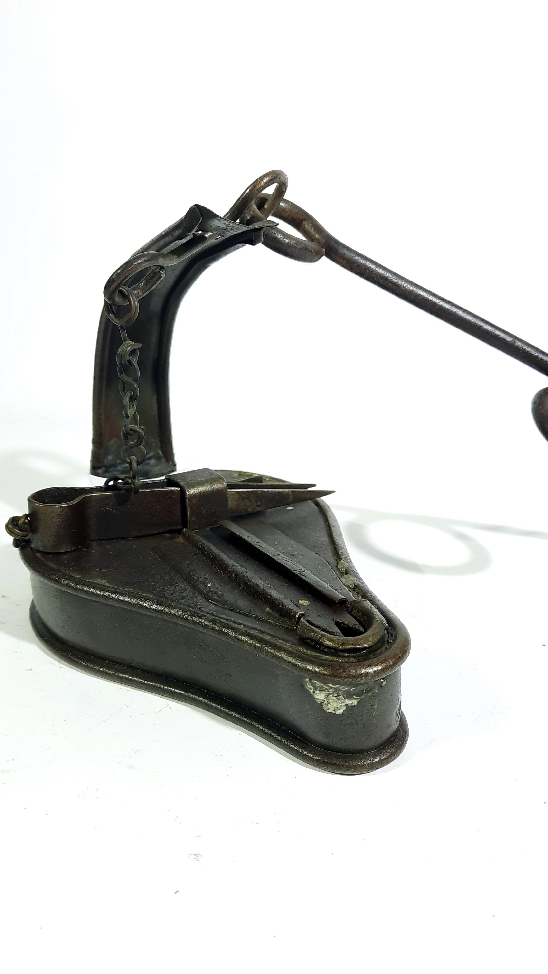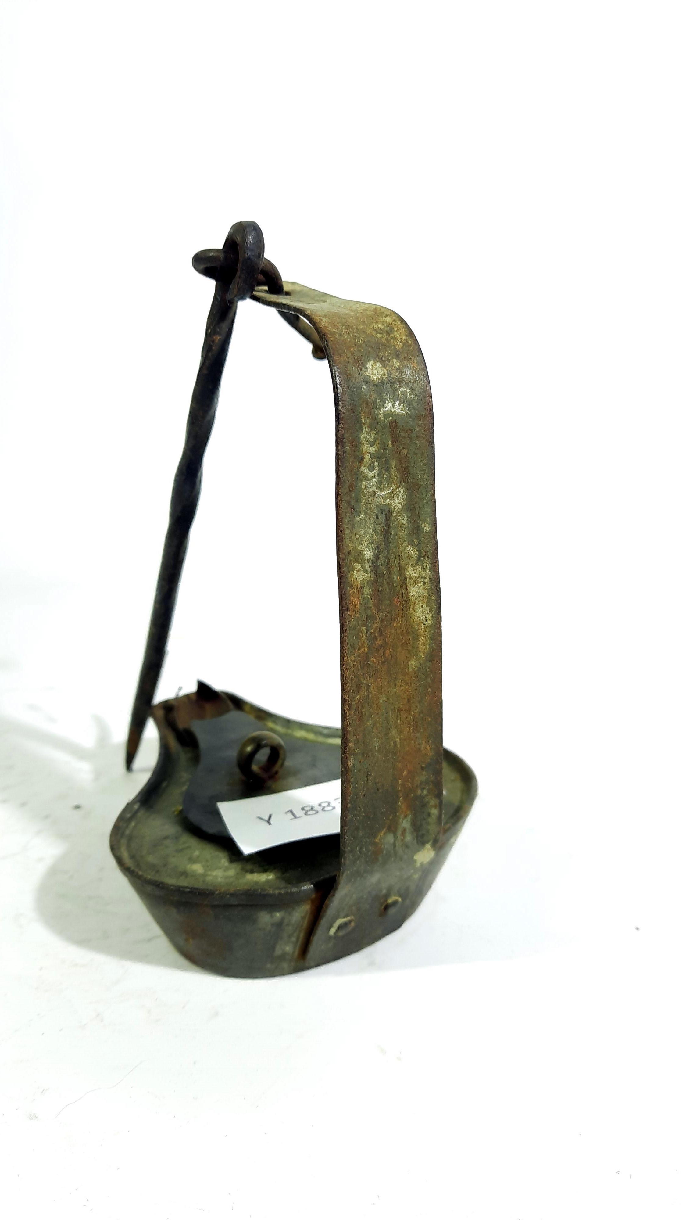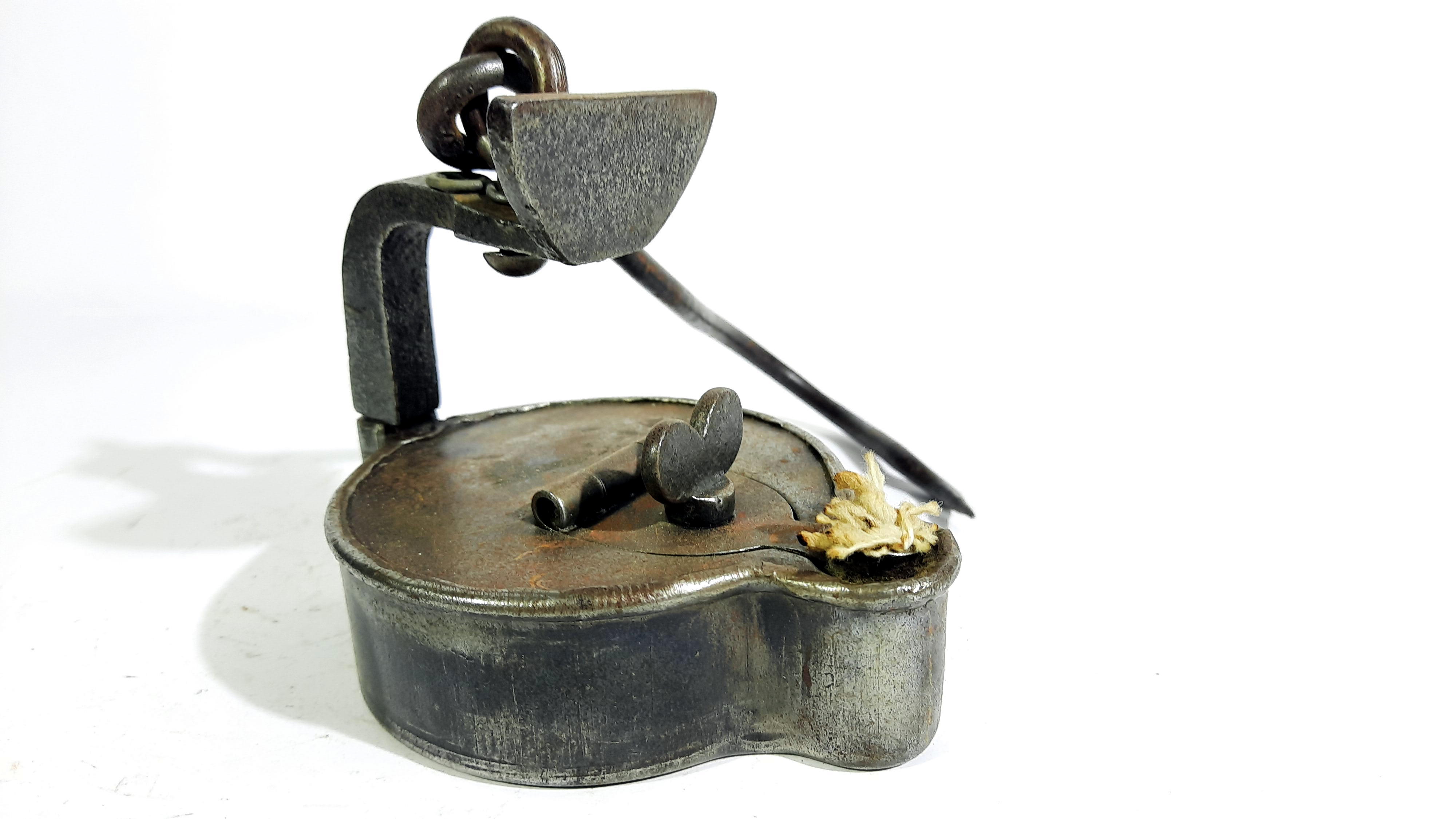 Westfälische Froschlampe aus gepresstem Blech, oben mit dem Deckel
