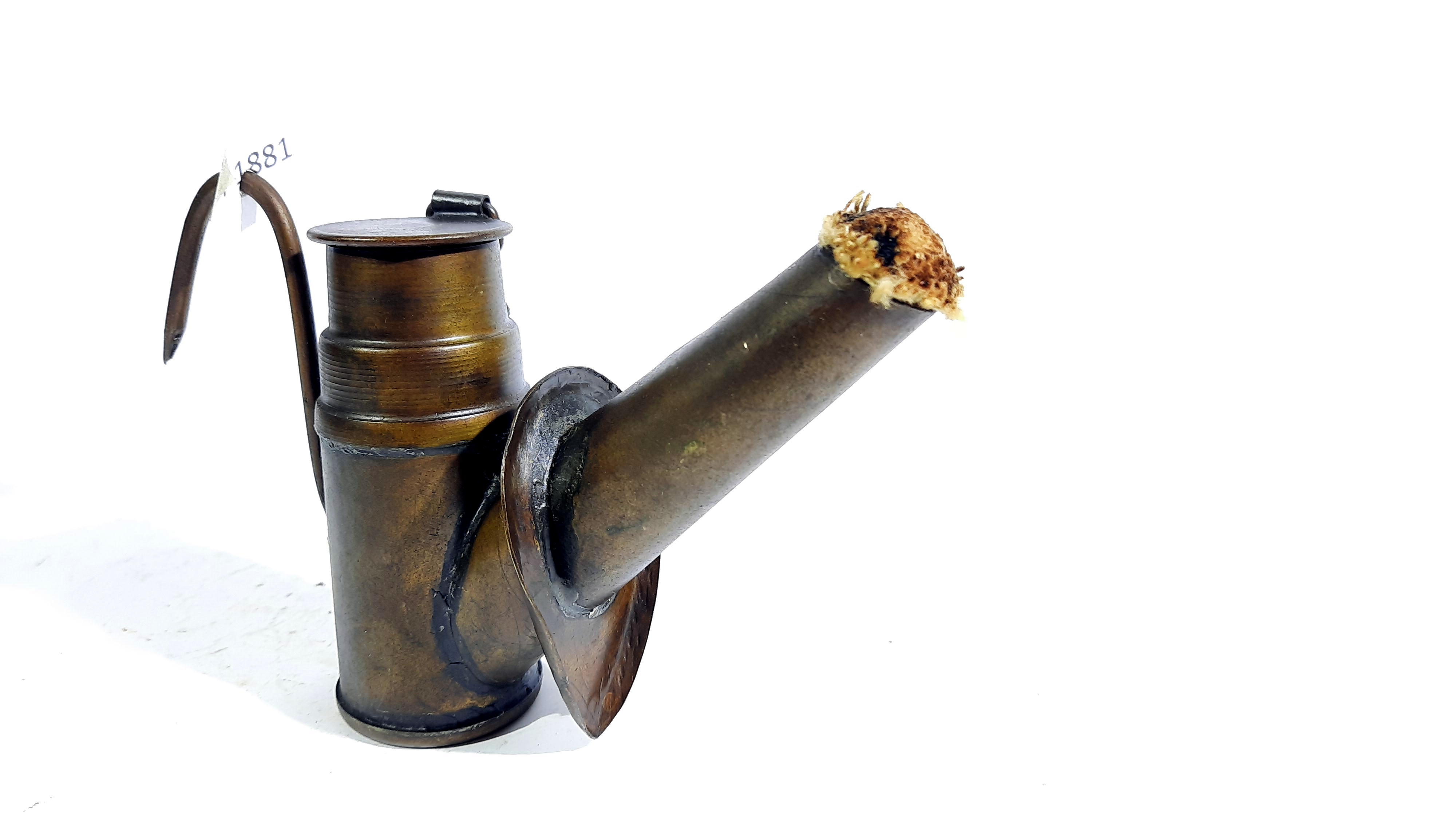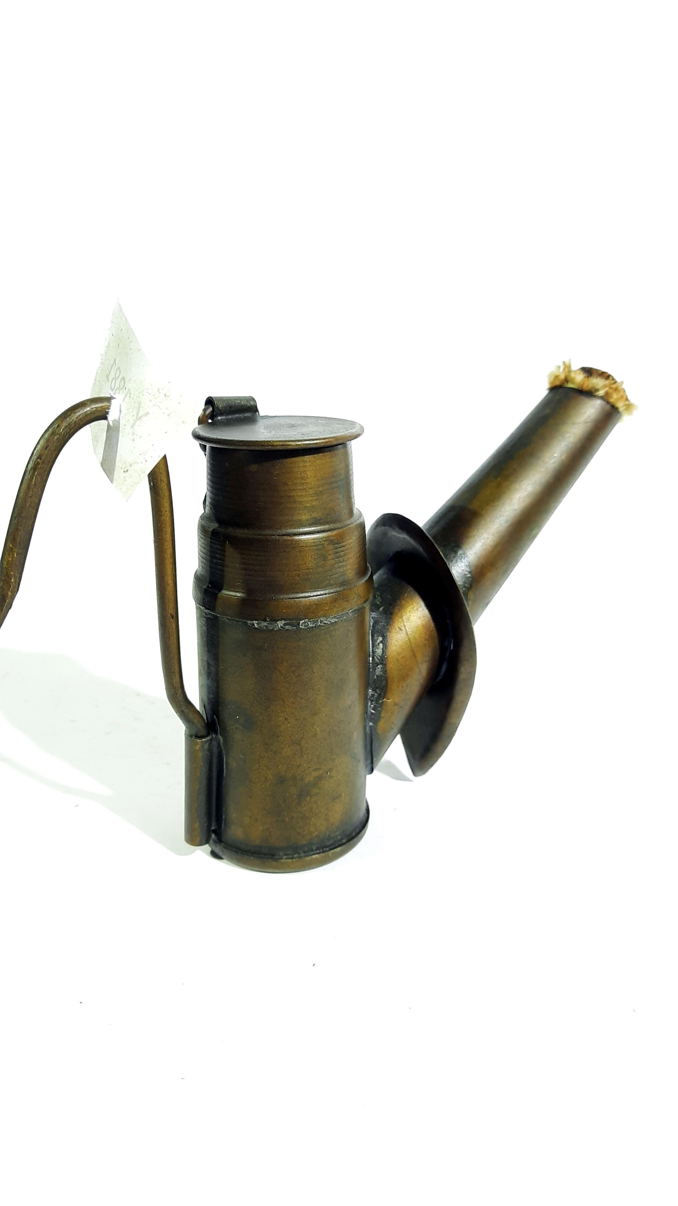 Kleine amerikanische Öl-Hutlampe aus Messingblech, sogenannte "Oilwick".